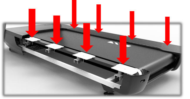 MDF材質超厚商用跑板。雙層打蠟,提高跑板壽命。雙面可更換跑板,壽命提高一倍。進口超級彈性跑板,提高跑板的緩沖性能,增強跑步機的減震和緩沖效果。