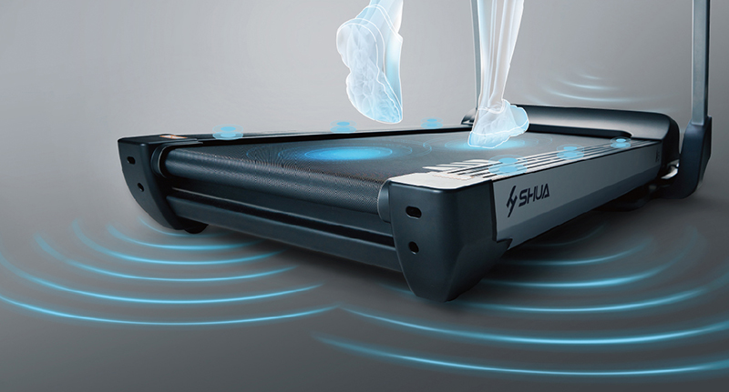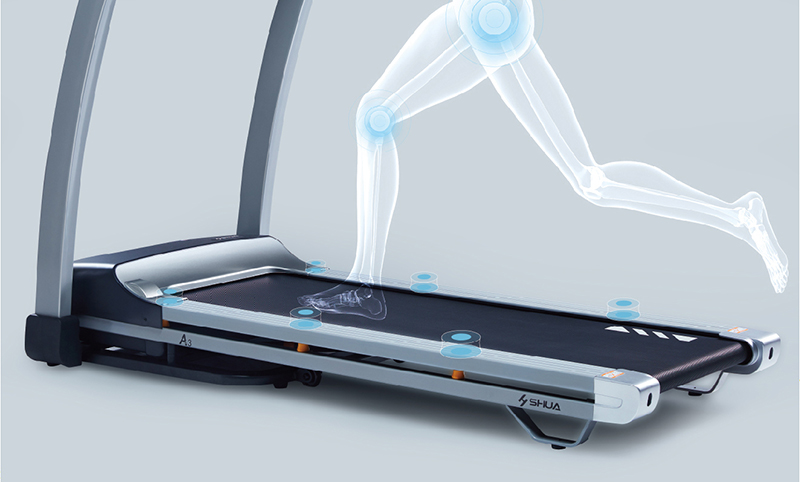 而A5跑步機采用分區域、分系數減震,能夠輕松緩解動態跑步時的連續沖擊,保持跑板穩定,讓腿部擁有360°的安全呵護。分區域減震的原理是根據跑板不同區域的不同受力,設置相應的軟硬度,從而有效緩解運動時的關節沖擊。分系數減震的原理為:科學布局六位緩沖柱于跑板邊緣,根據每個柱體的不同系數產生不同的物理減震效應。