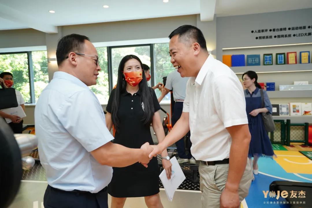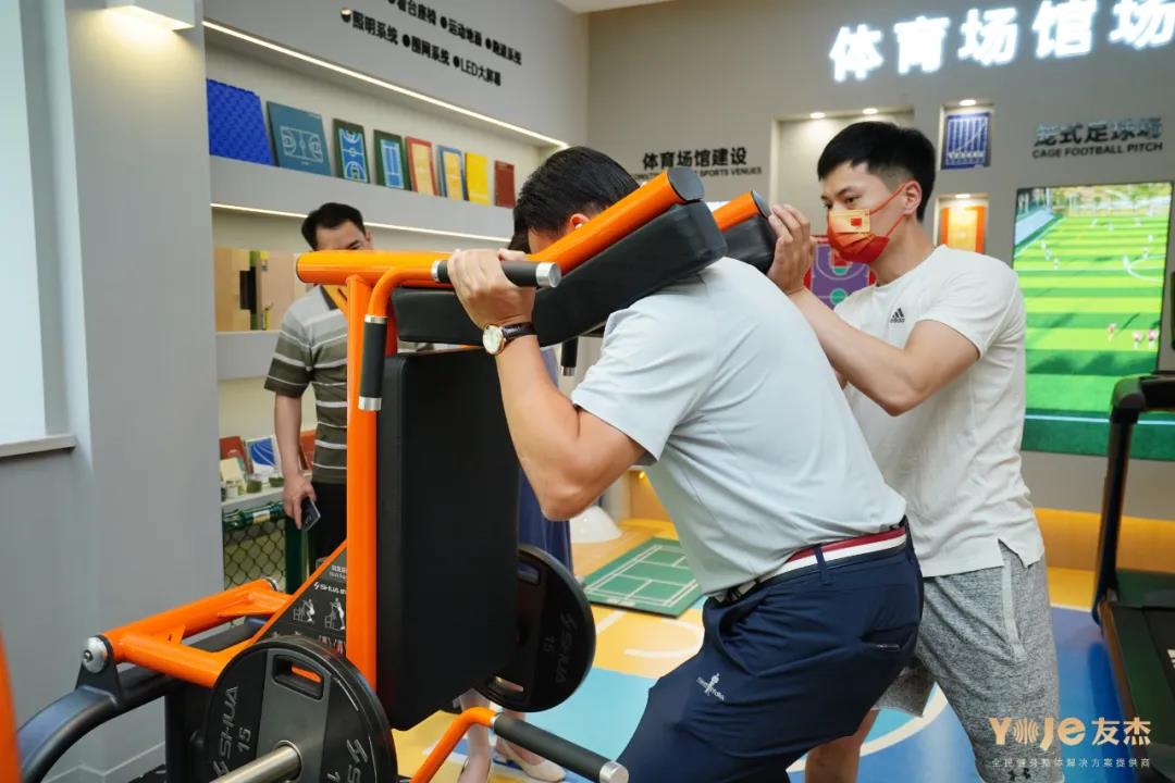 楊貴山局長一行參觀友杰家庭健身、商用健身、全民健身、體能訓(xùn)練、老年健身、校園體育等各個展廳