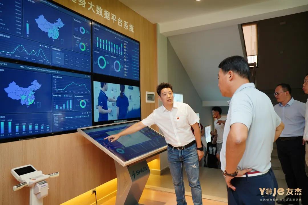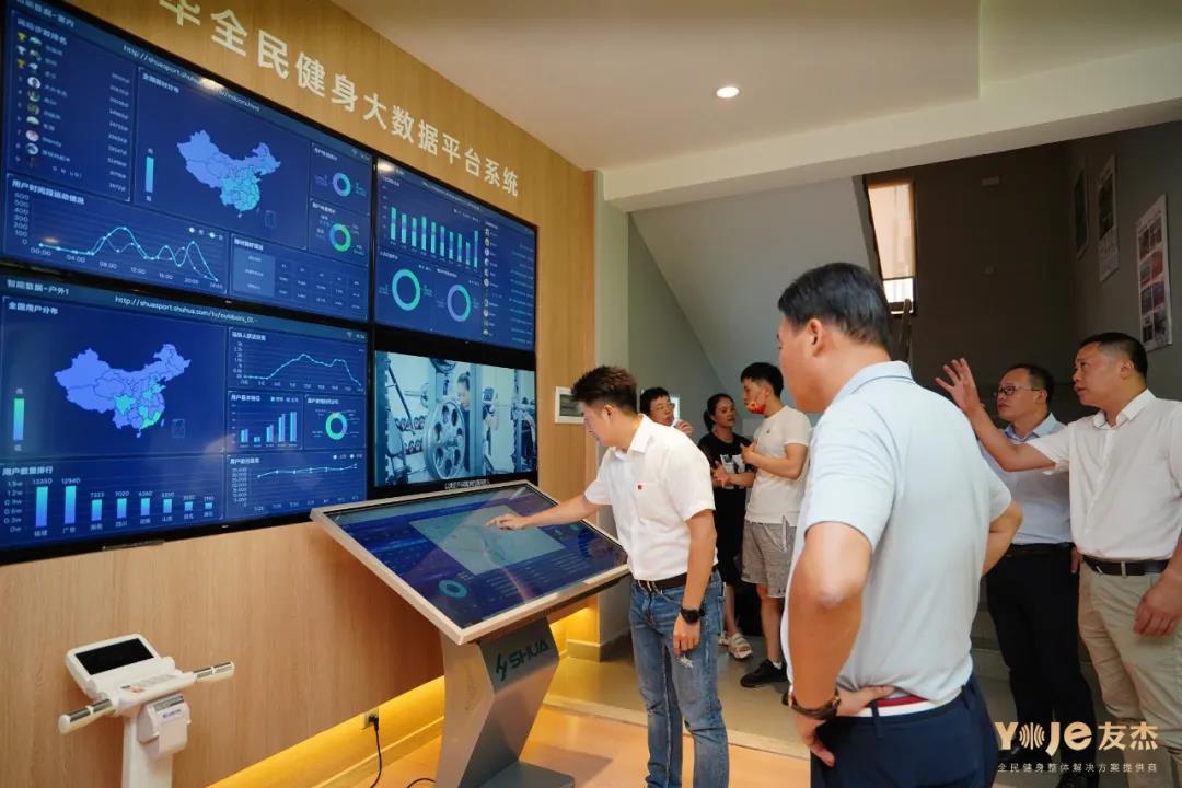 楊貴山局長一行聽取友杰在全民健身取得的成績,并參觀了舒華國內(nèi)領(lǐng)先的全民健身大數(shù)據(jù)平臺系統(tǒng)
