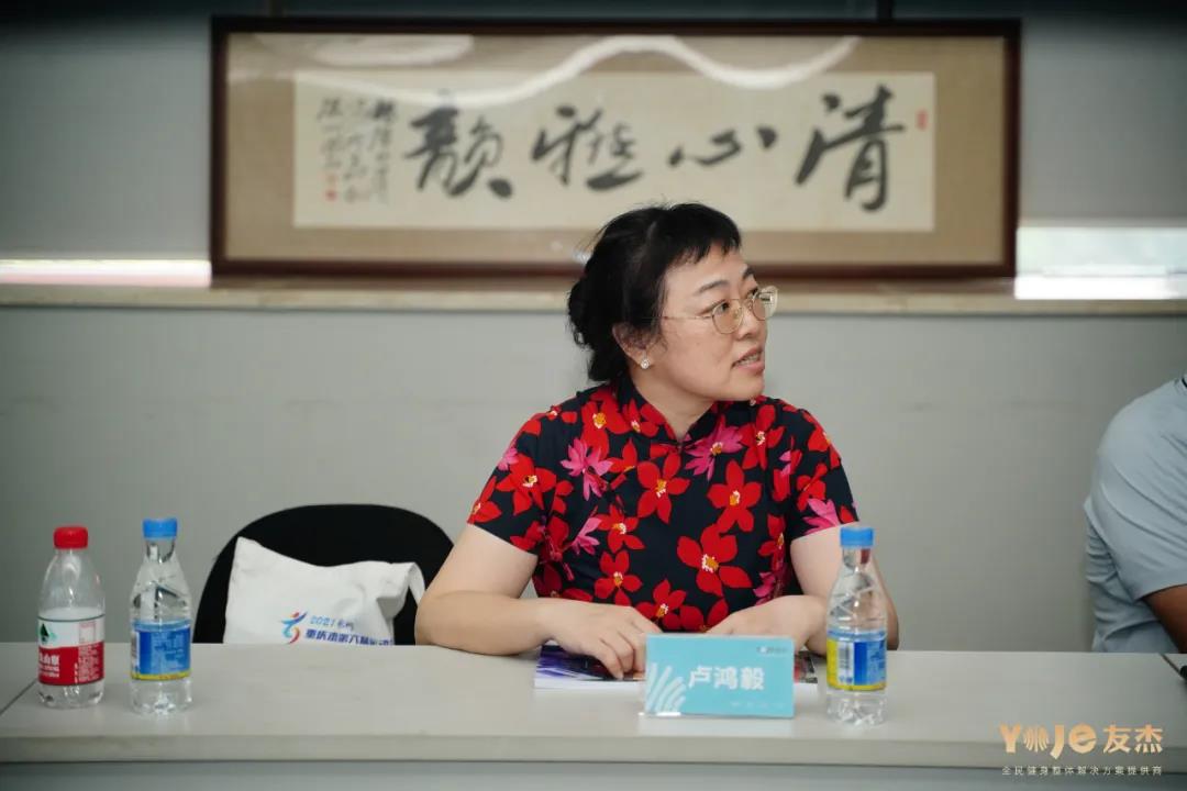 楊貴山局長一行先后參觀了重慶友杰家庭健身、商用健身、全民健身、體能訓(xùn)練、老年健身、校園體育等多個展廳,深入了解了全民智慧健身和企業(yè)發(fā)展情況。隨后,雙方圍繞重慶體育產(chǎn)業(yè)行業(yè)前景、發(fā)展合作等方面進(jìn)行座談交流。