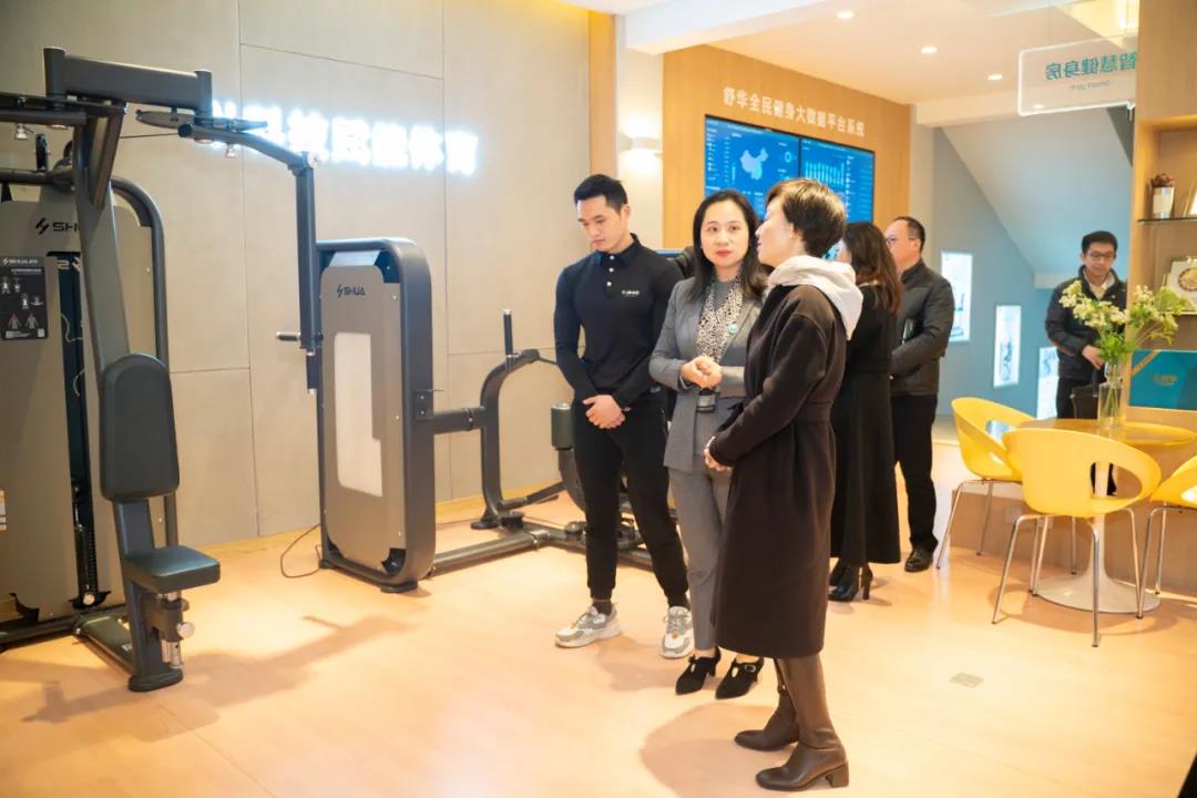 隨后,公司總經理吳成恩先生向高琳區長及各位領導匯報了友杰體育近幾年在智能化全民健身領域取得的創新成果,并詳細介紹了智能體育公園及智慧社區健身中心、以及舒華智能管理大數據平臺系統的運行情況。